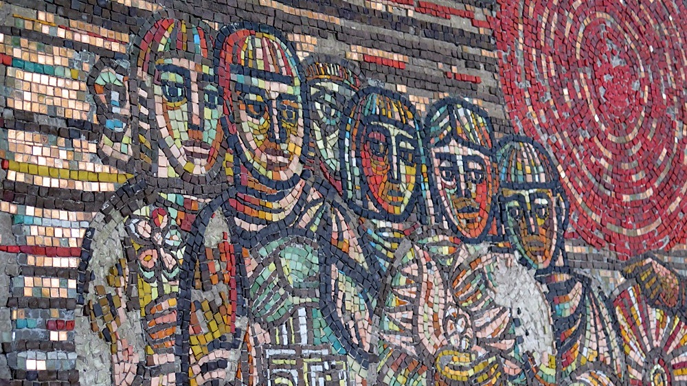 The interior showcases nearly 1,000 square meters of intricate mosaics depicting key moments in Bulgarian socialist history, making it a unique artistic treasure.